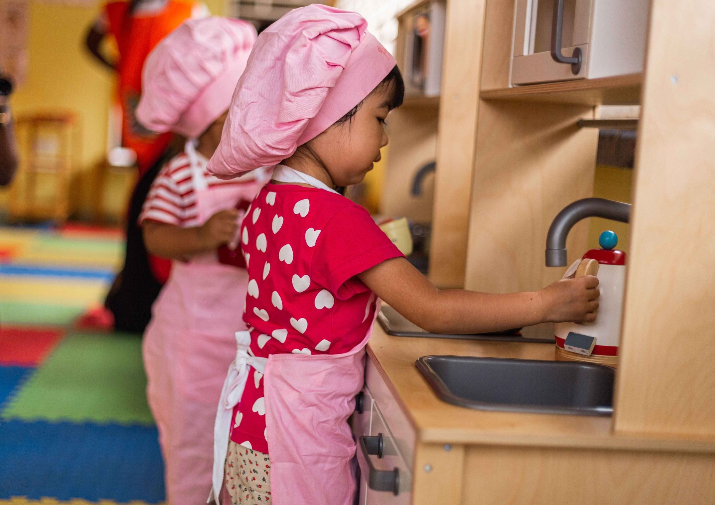 Activities such as preparing a snack, learning how to button and tie their shoes, sweeping and cleaning up, foster confidence, independence, and responsibility.