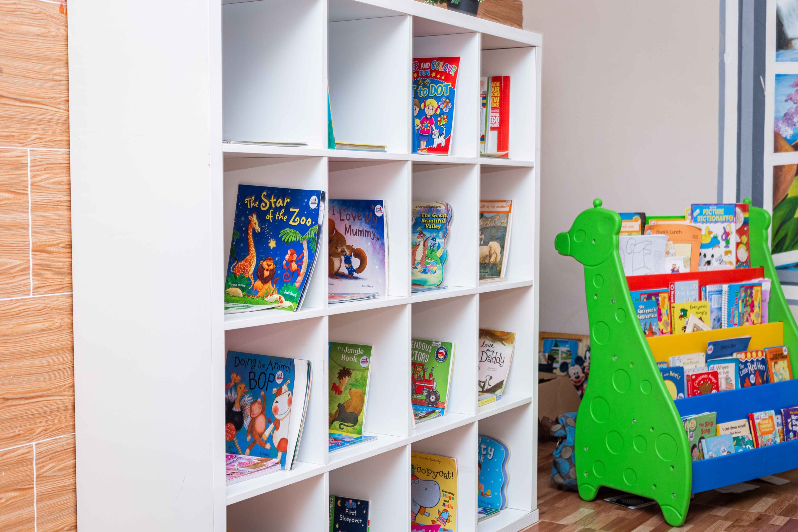 Our Library is set to be a wonderful zone full of a wide selection of over 500 books ranging from different titles, themes, sizes, colors and topics. Our creative beautiful and inviting setting gives our children the perfect surrounding to fall in love with the skill of reading. Excellent reading habits begin in the early years. Introducing children to literature in nursery supports primary school readiness, promotes early literacy and supports a love of language and reading. Our library will develop critical thinking skills and enhance creative and social development. Our provision of educational books in our library promotes early literacy skills. Alphabet books help our children learn the names of the letters and the sounds that each letter represents. Our counting books help children learn how to count and to recognize numbers. Our poetry and rhyming books help to teach our children phonological awareness. We stock our library with oversized books as a tool to teach our children how to handle books and to point out letters, words and other features of the books.