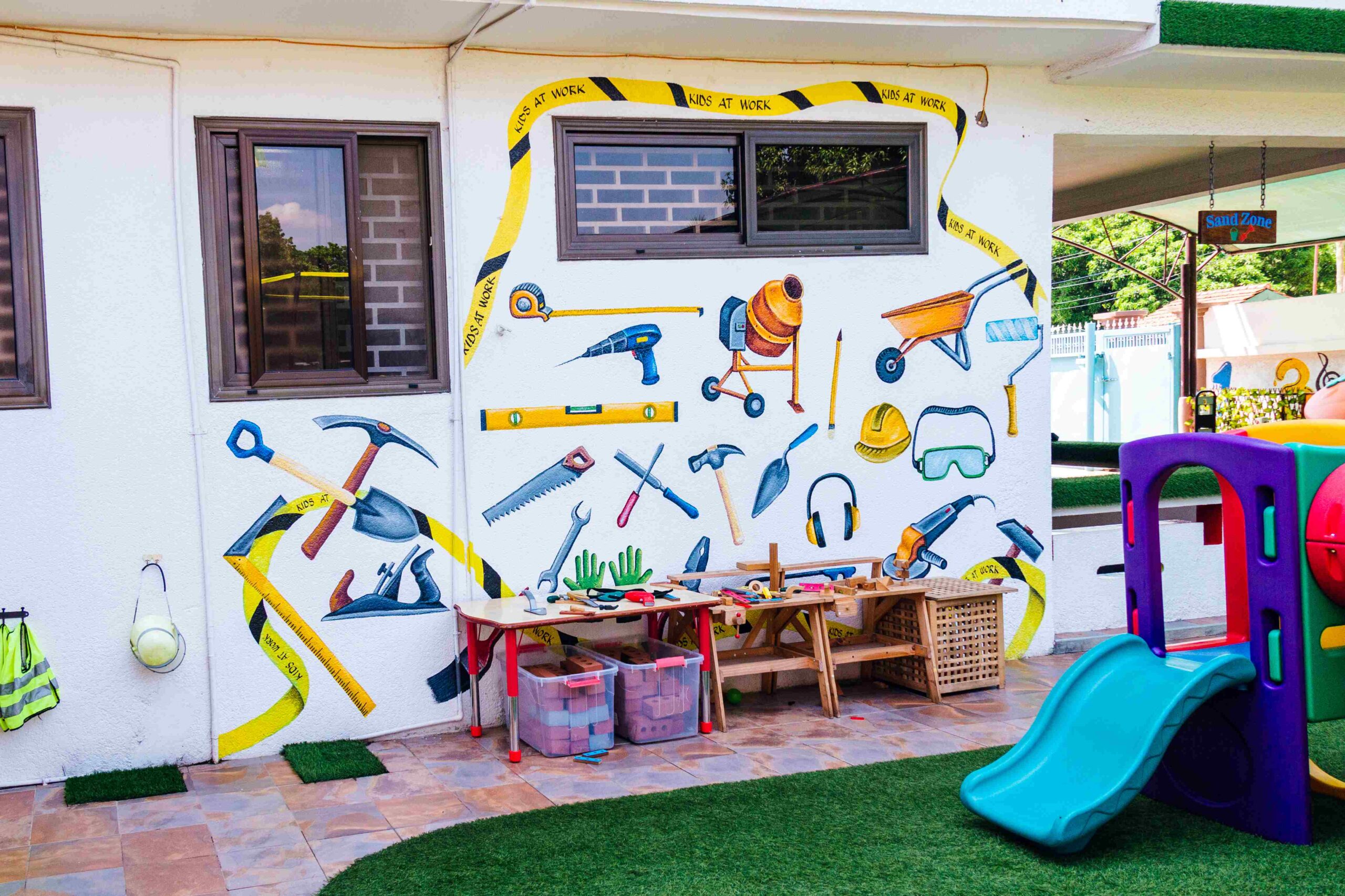 Our play area is shaded by canopies and has outdoor fans fixed to protect the children from the strong sun rays allowing them to spend more hours outside.